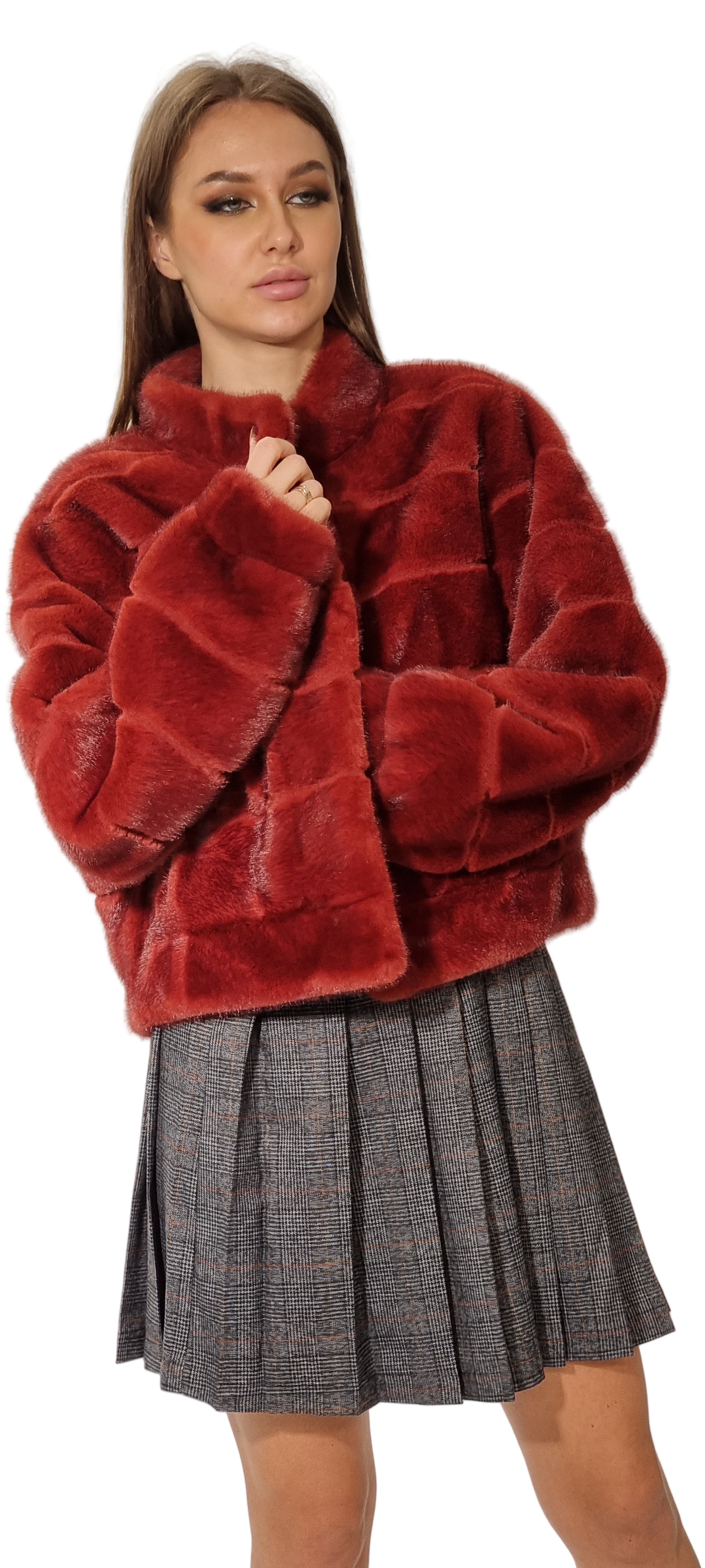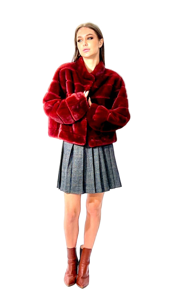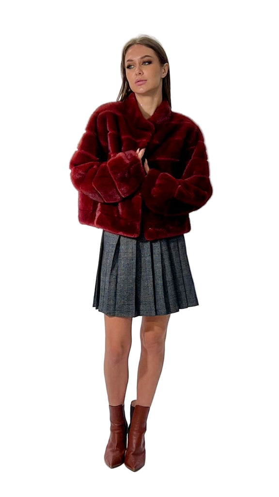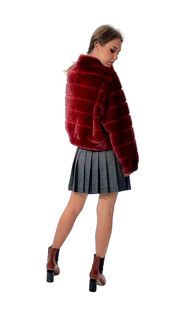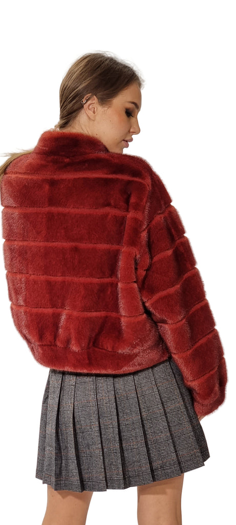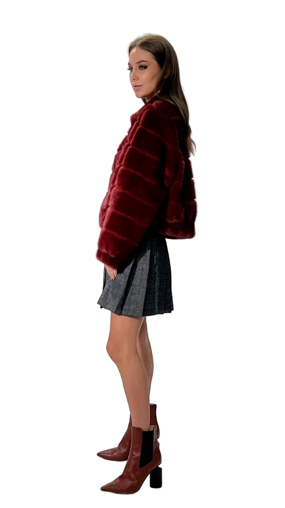 LT Faux Fur Cropped Cut Jacket Dark Red Color