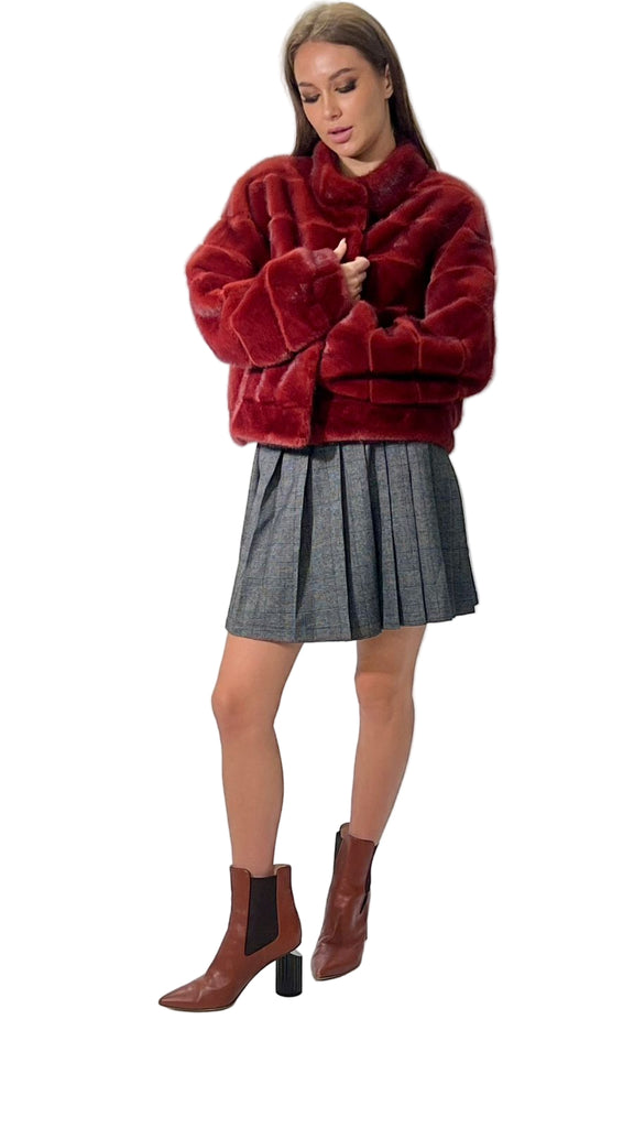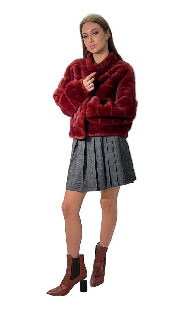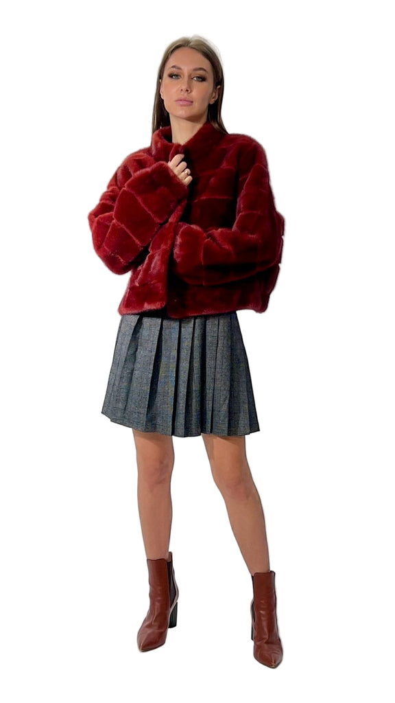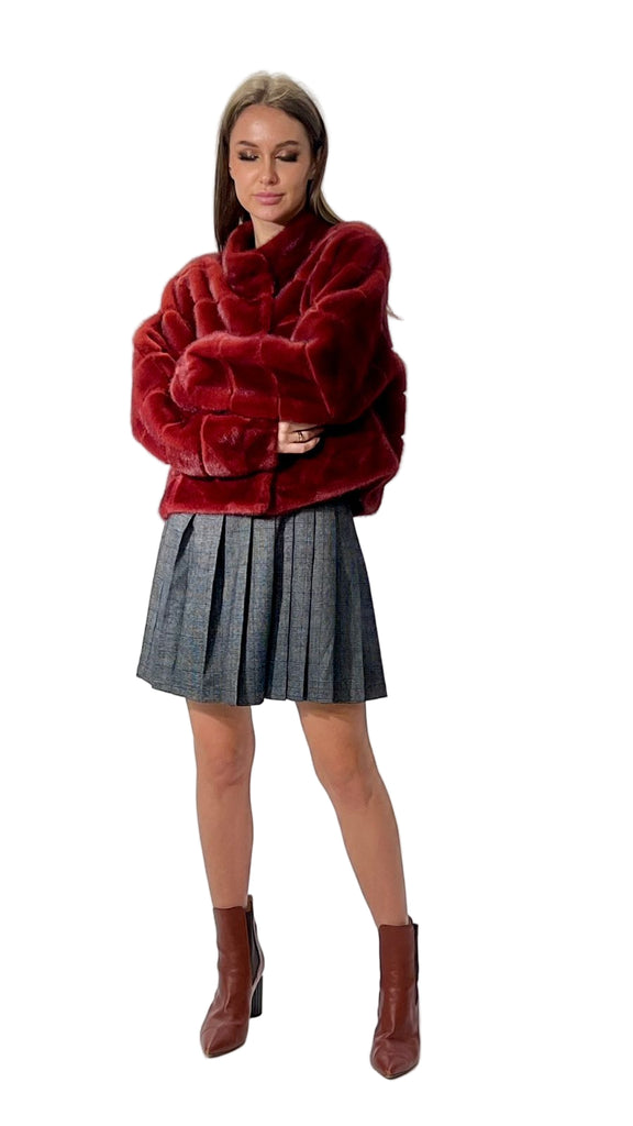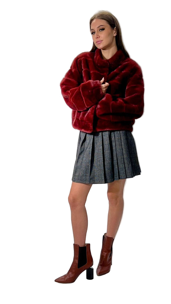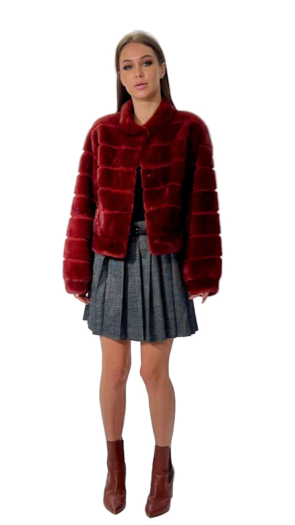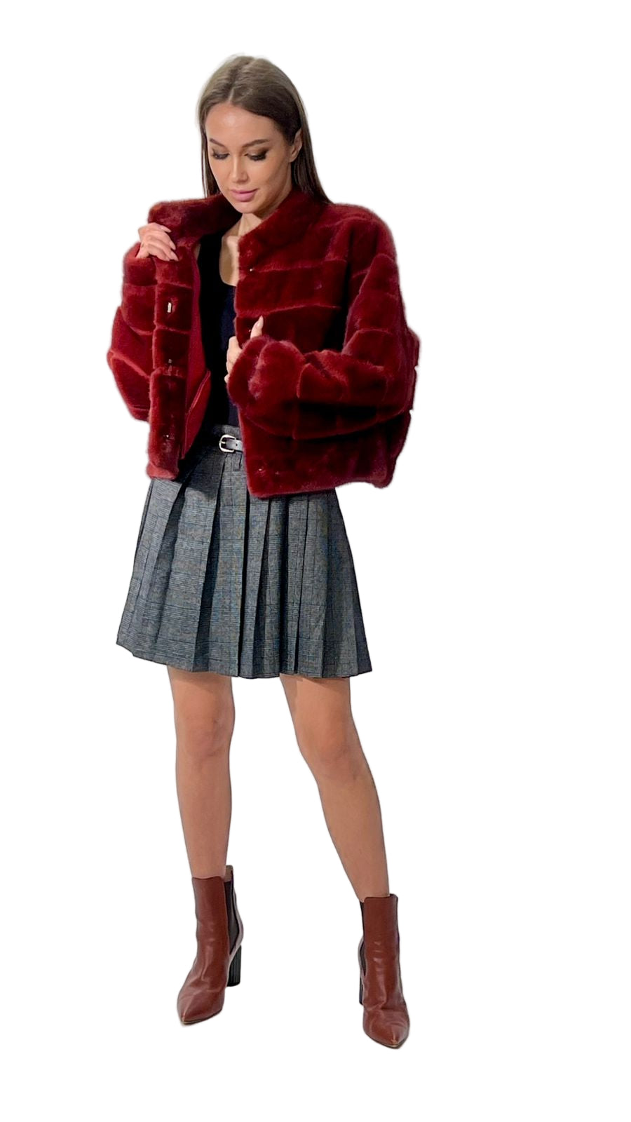 LT Faux Fur Cropped Cut Jacket Dark Red Color