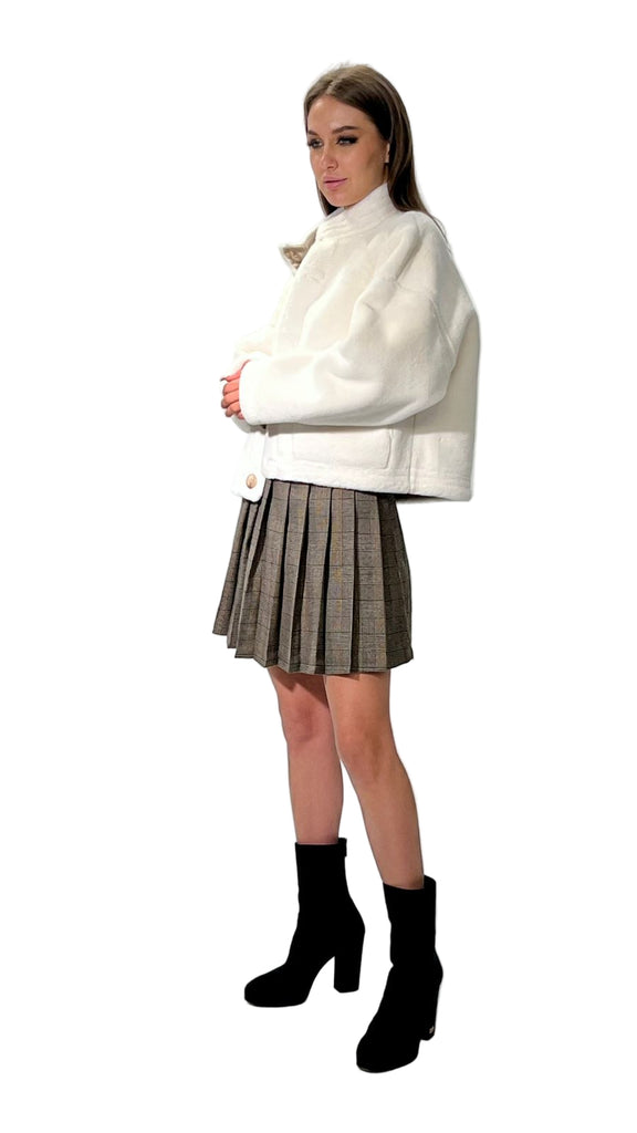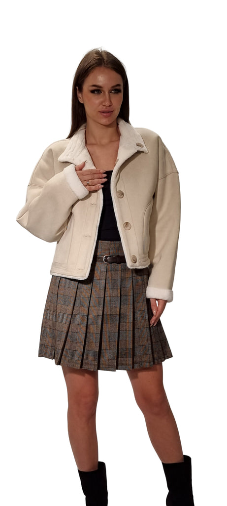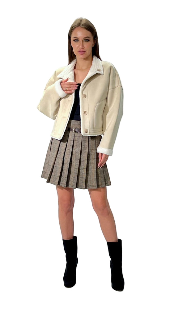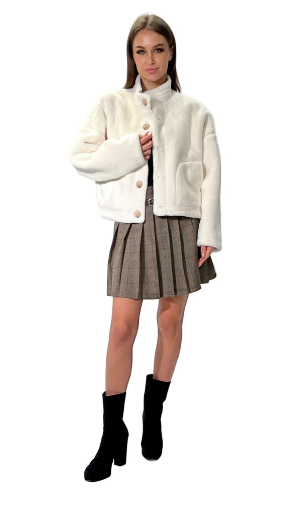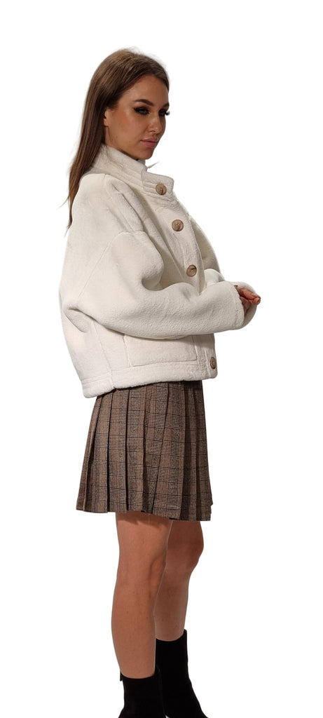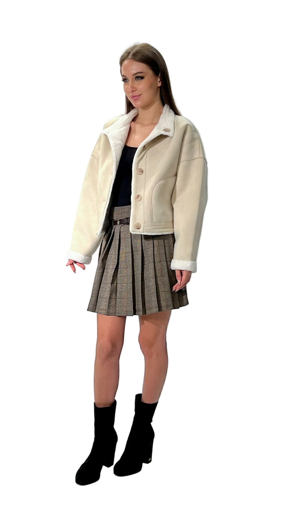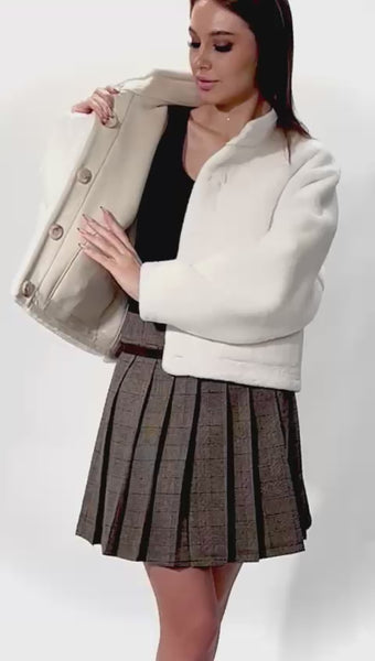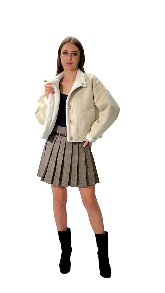LT Reversible Cropped Fur/Wool Jacket Panna Color