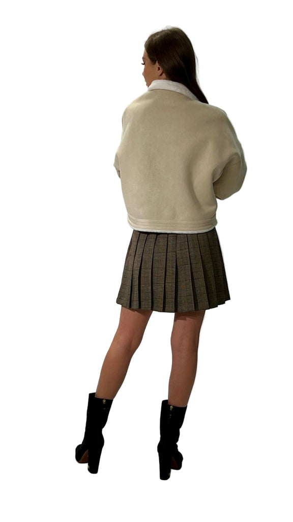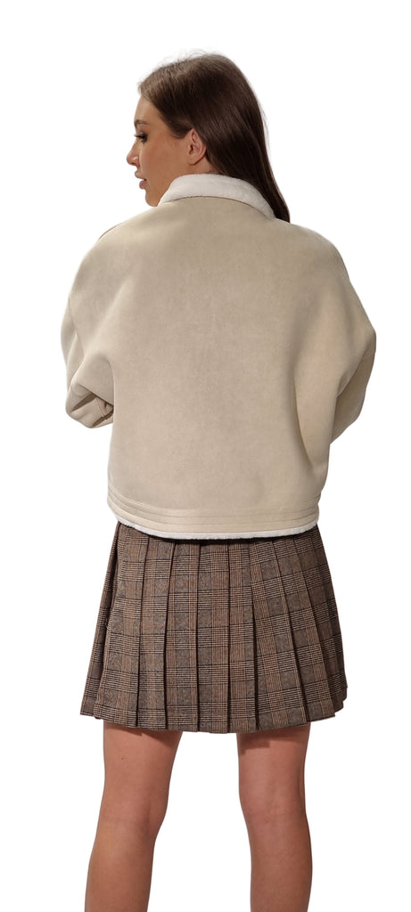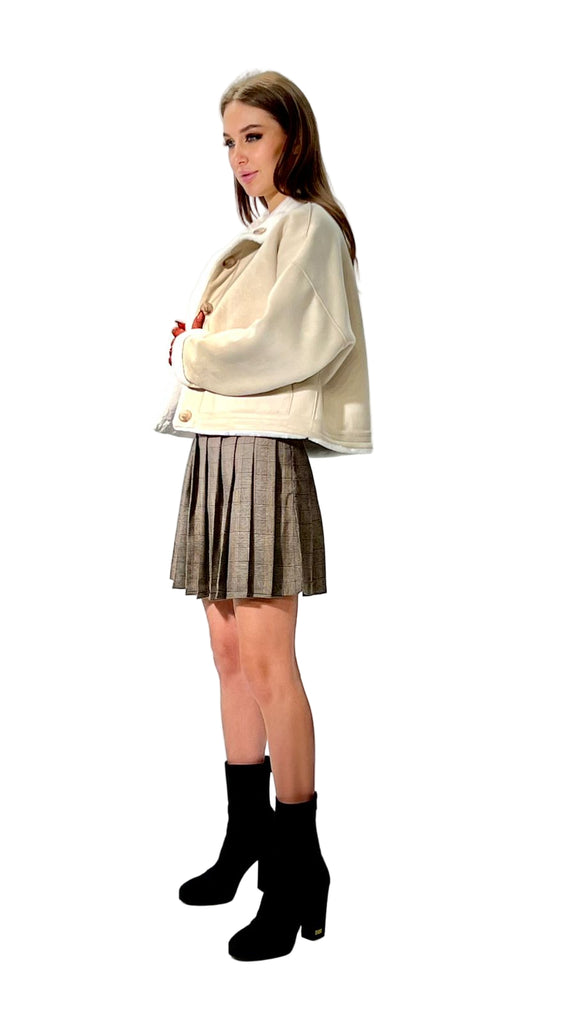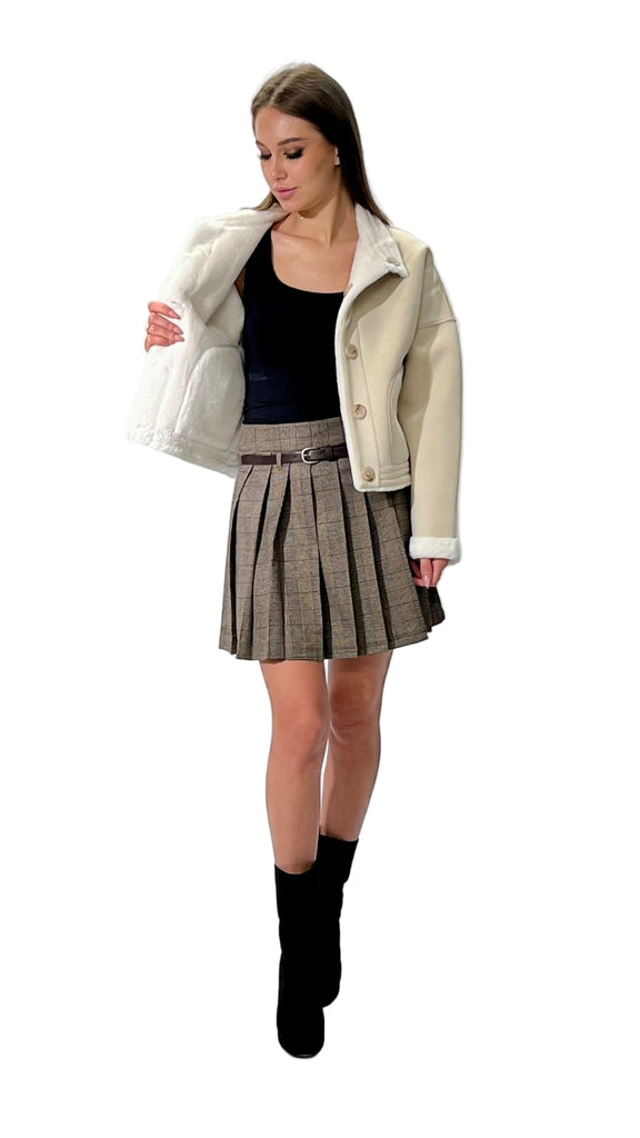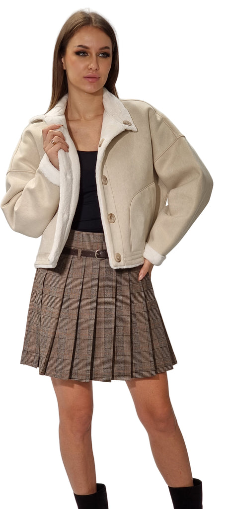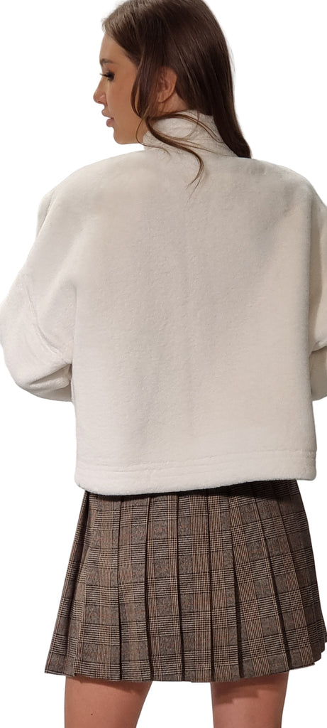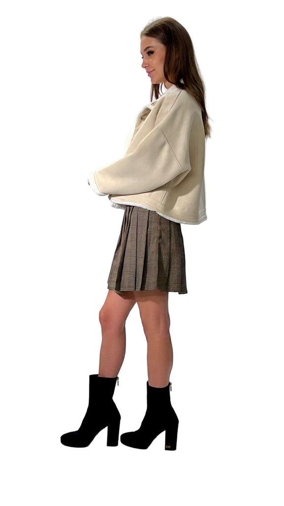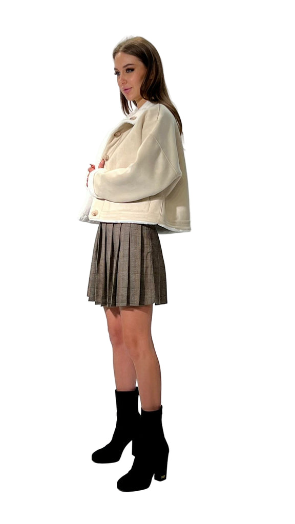 LT Reversible Cropped Fur/Wool Jacket Panna Color