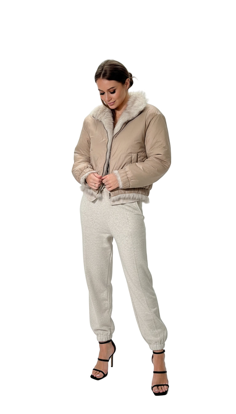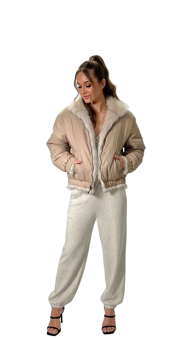 LT Double-Faced Faux Fur Jacket Walnut Color