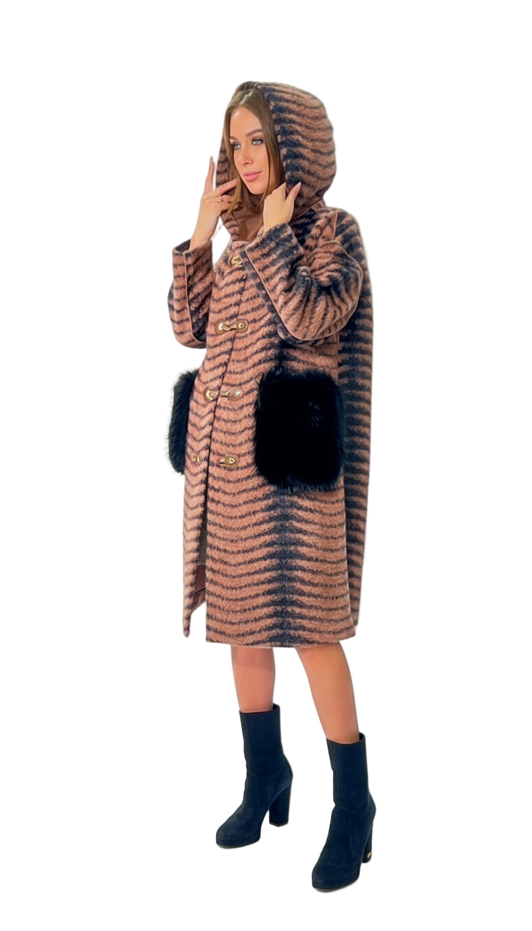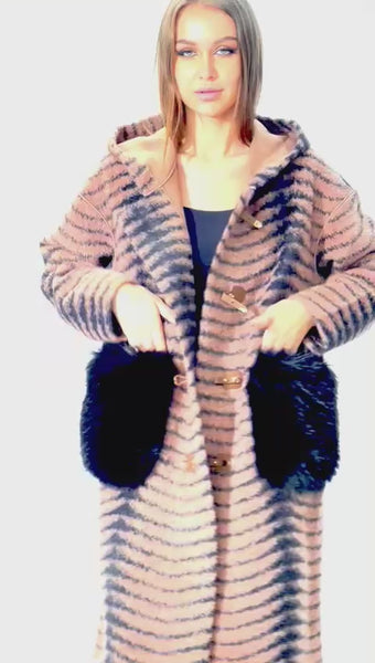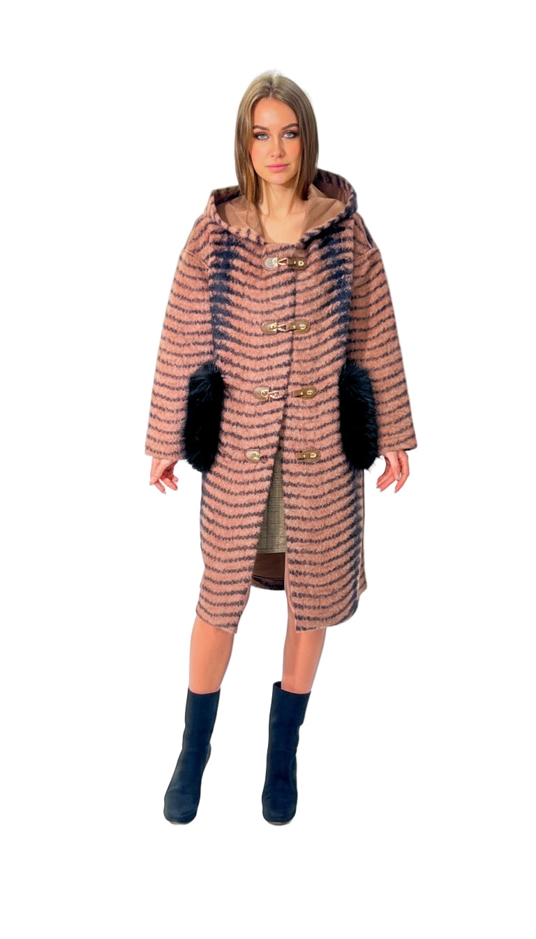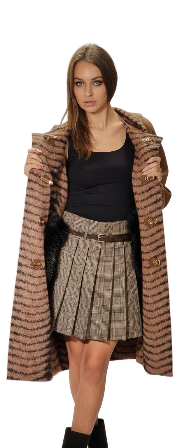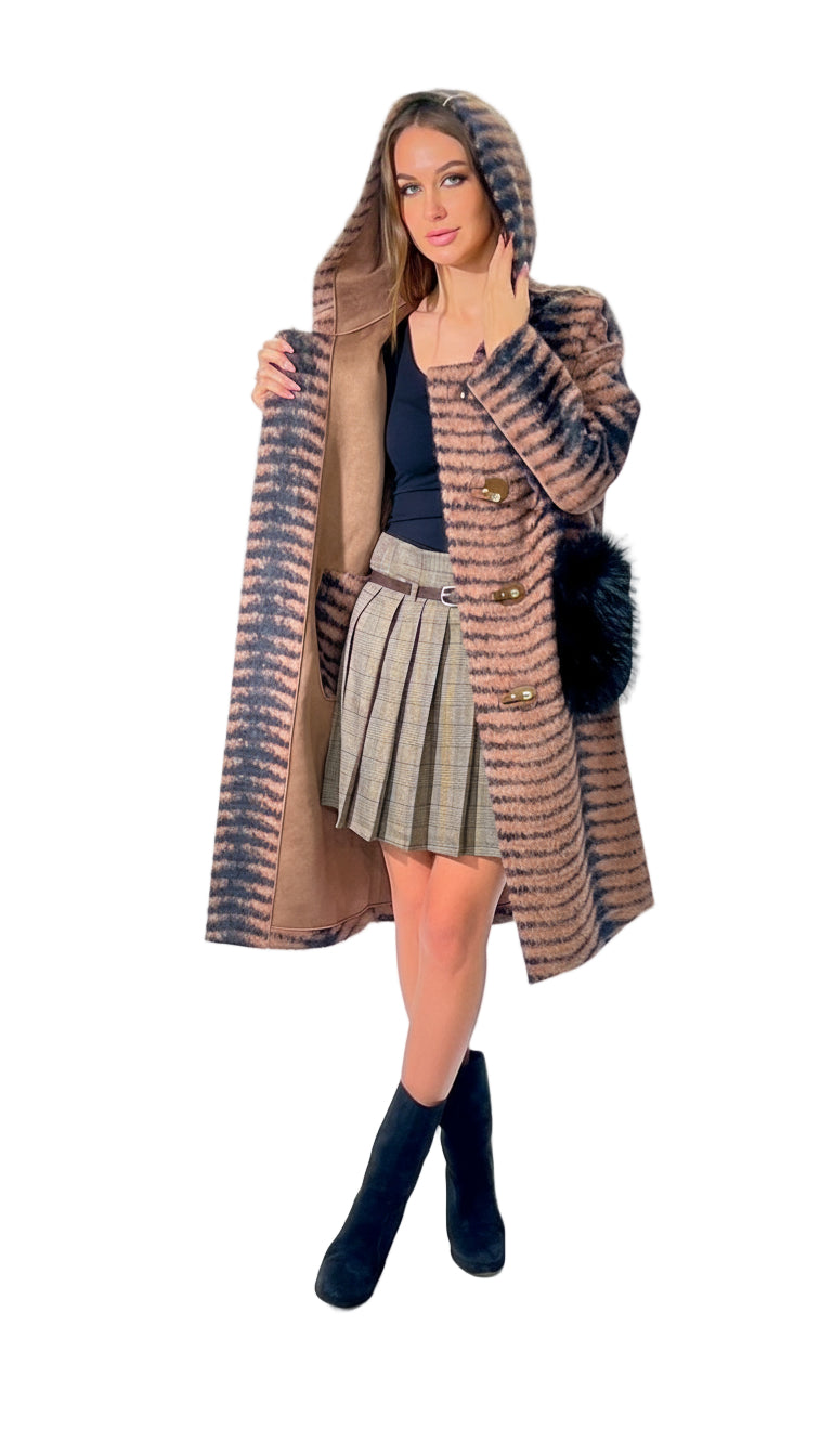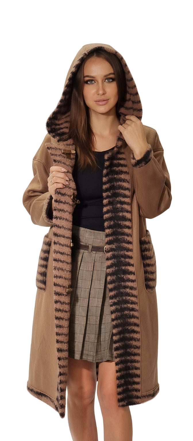 LT Reversible Hooded Long Coat Tiger Print Coffee Color