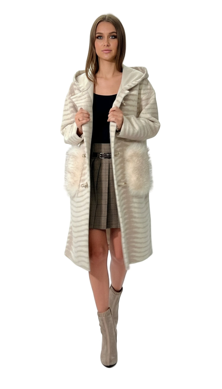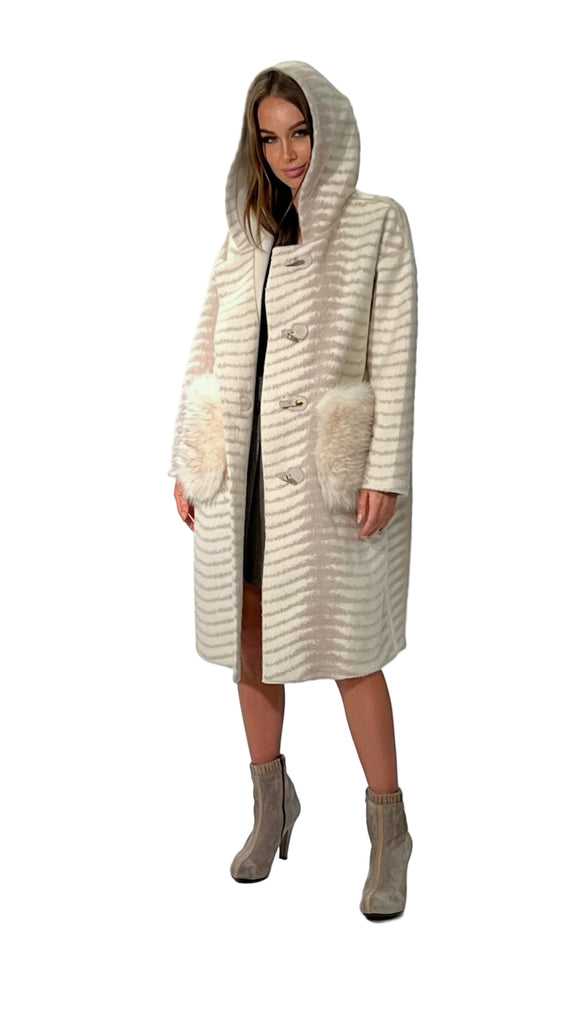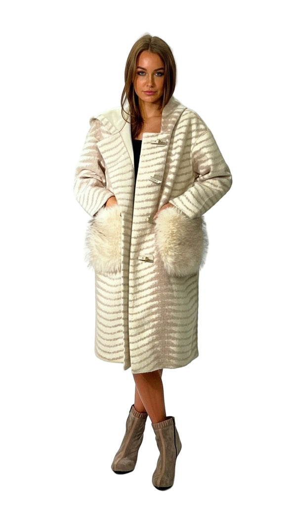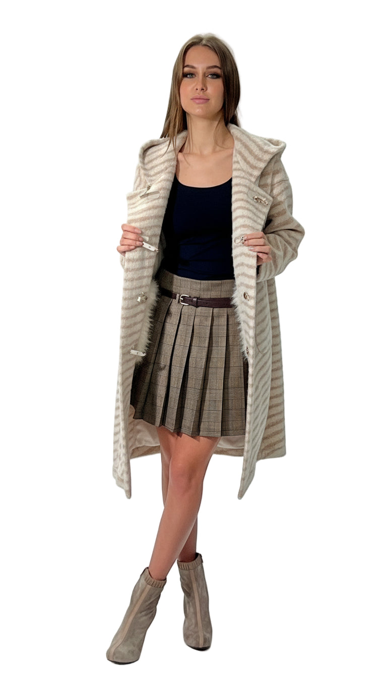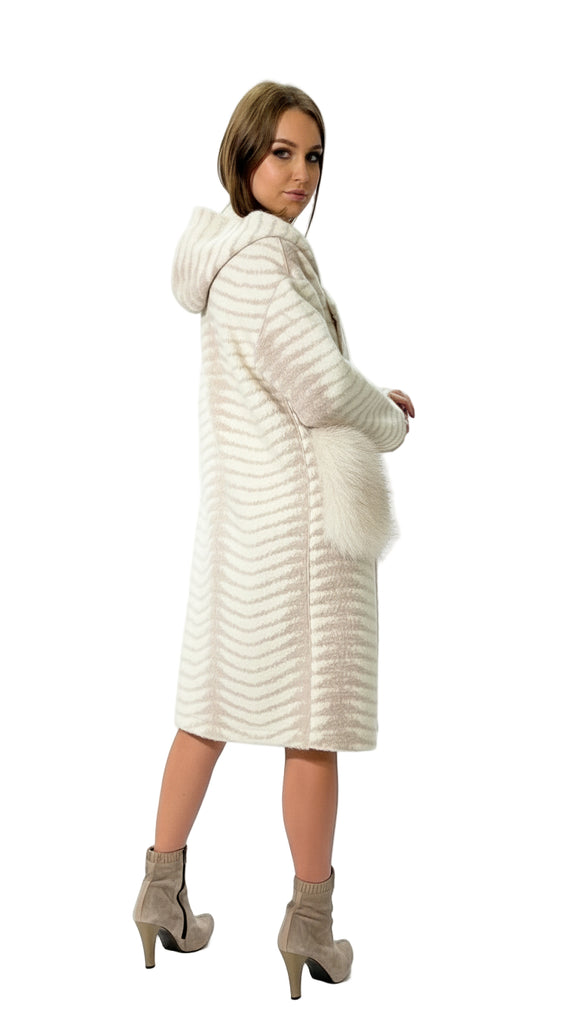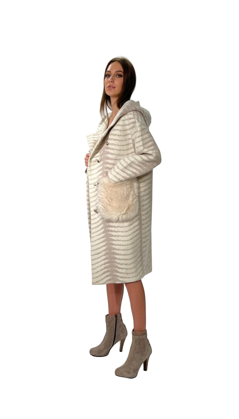 LT Reversible Hooded Long Coat Tiger Print Panna Color
