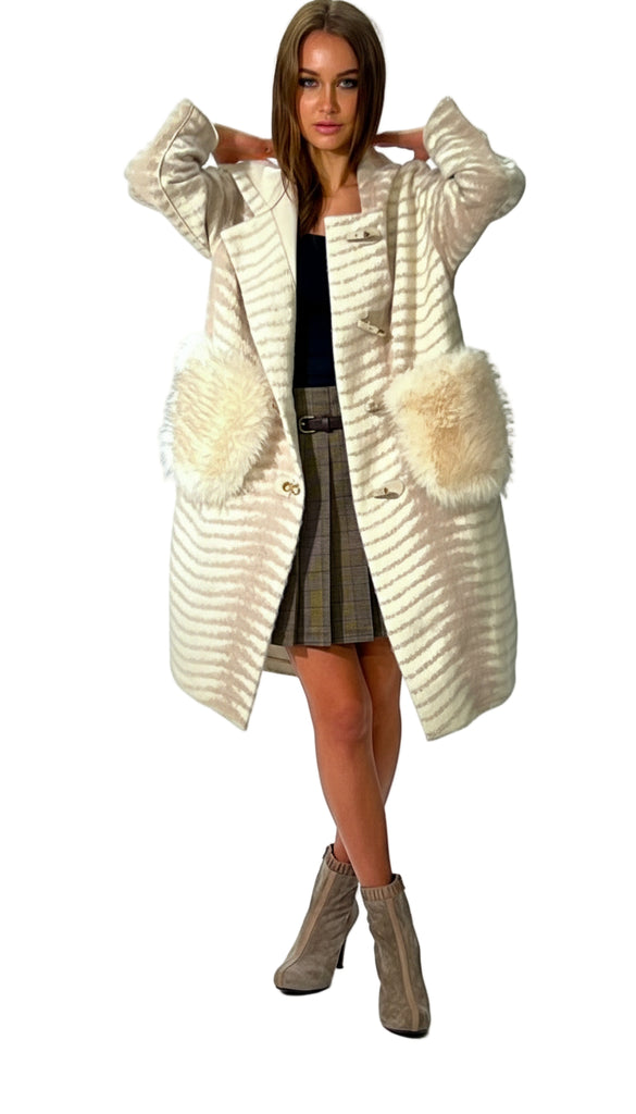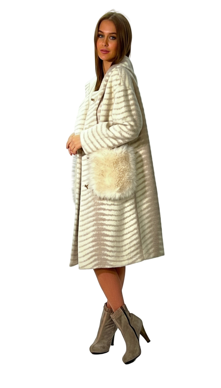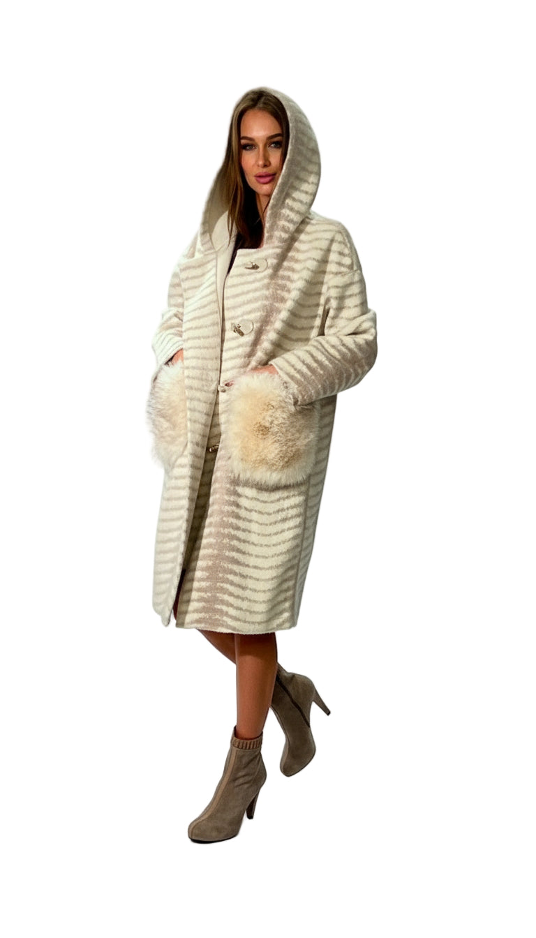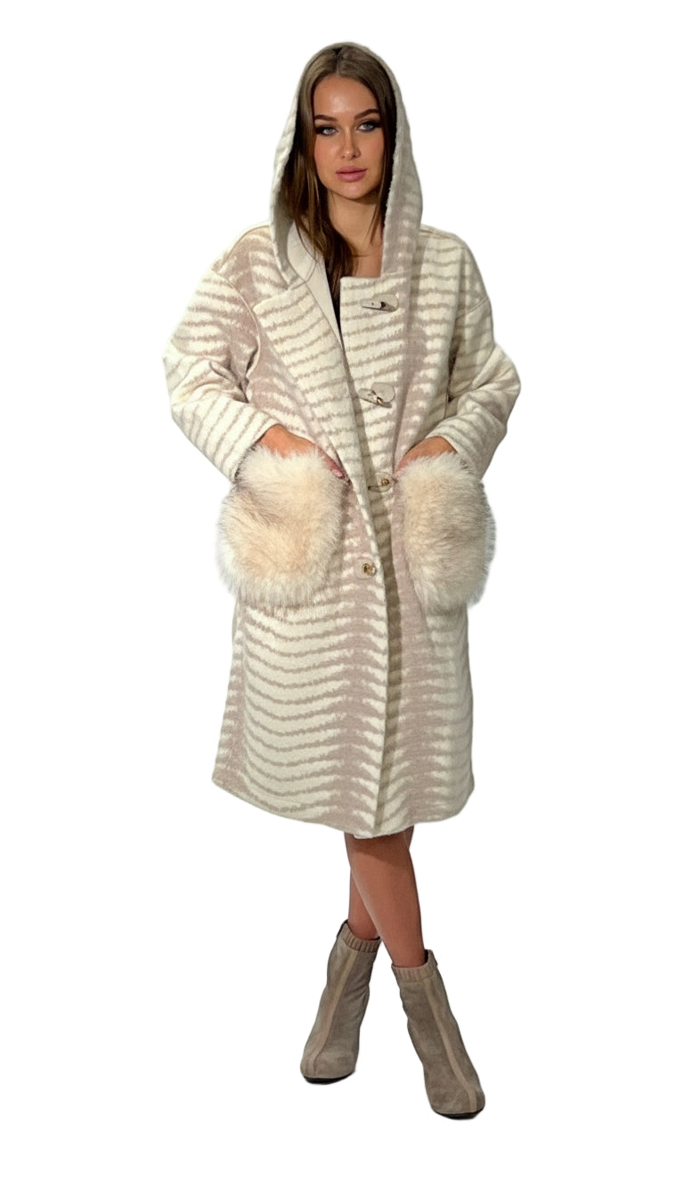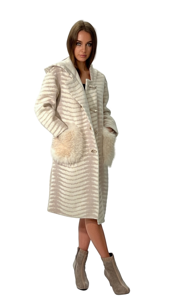 LT Reversible Hooded Long Coat Tiger Print Panna Color